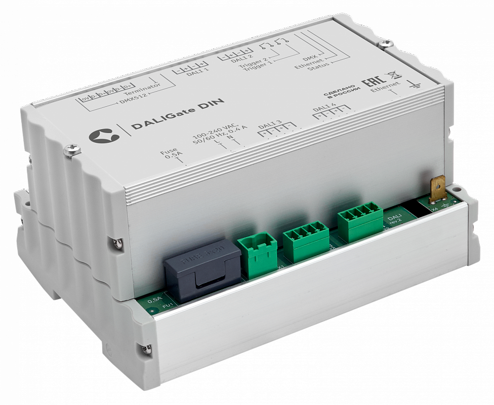 Конвертер DALIGate DIN (ДалиГейт Дин) представляет собой интеллектуальный Ethernet/DMX/DALI преобразователь протоколов и является эффективным решением для управления световым оборудованием, работающем на базе интерфейса DMX512.