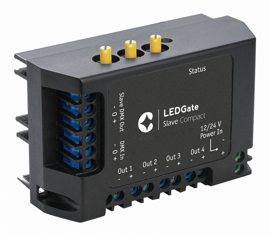 LED-драйвер LEDGate Slave Compact (ЛедГейт Слэйв Компакт) представляет собой драйвер, обеспечивающий функцию расширения количества каналов для устройств LEDGate Compact и LEDGate Wireless Compact, и служит в качестве регулируемого источника тока для управления светодиодами по протоколу DMX512.