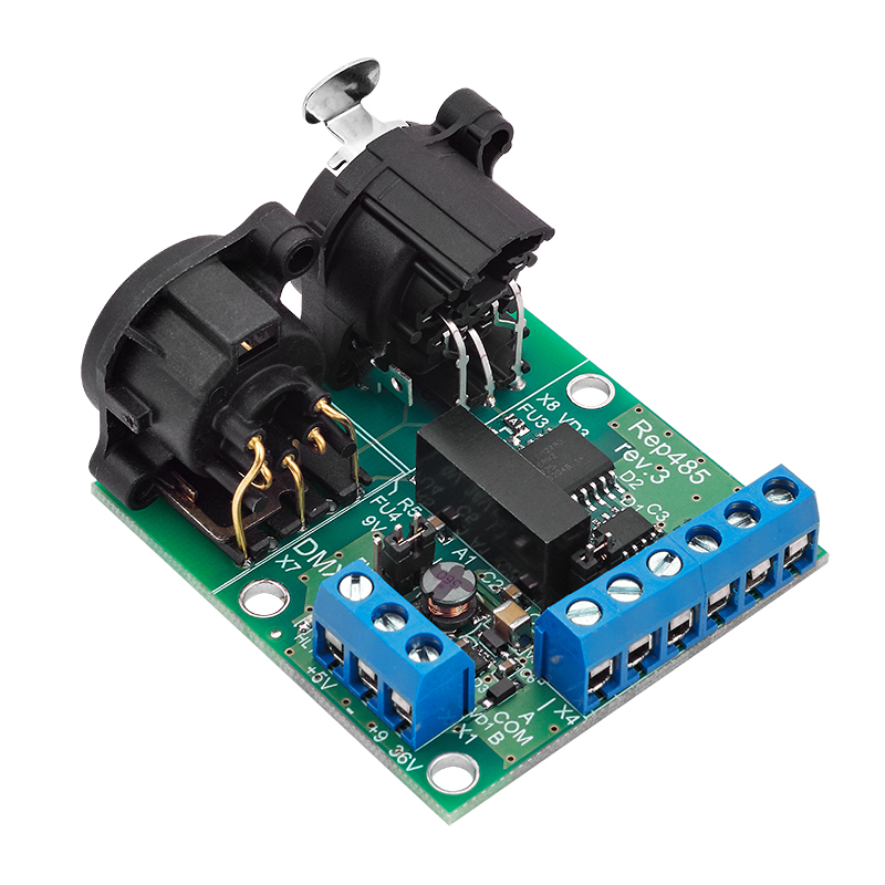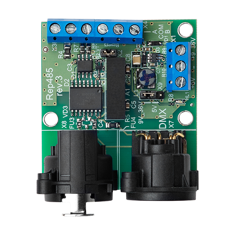 - Используется для установки внутри световых приборов, поддерживающих протокол DMX512, с целью защиты их от попадания на интерфейс высокого напряжения